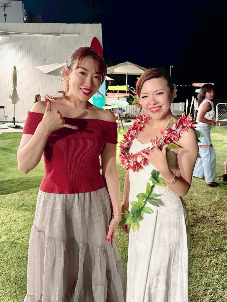LUANAダンサーズの皆さんによる、青い珊瑚礁生バンド×夕陽のフラパフォーマンスに癒されました。