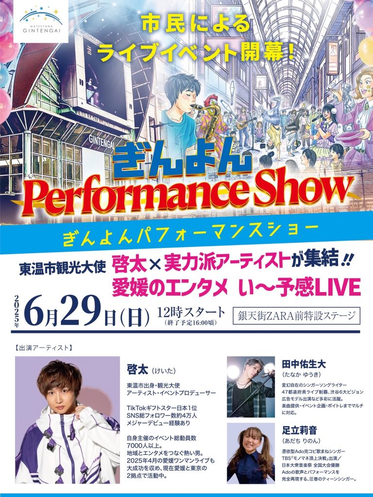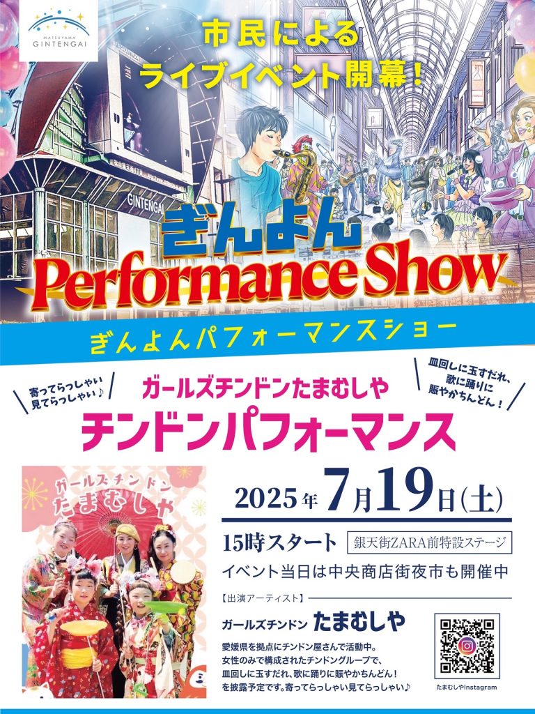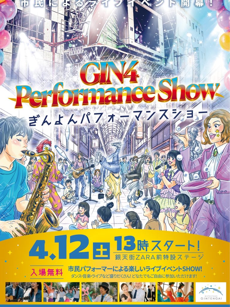 歌、ダンス、楽器演奏、大道芸など、あなたの得意なことを銀天街で披露し、